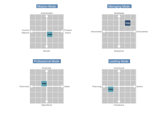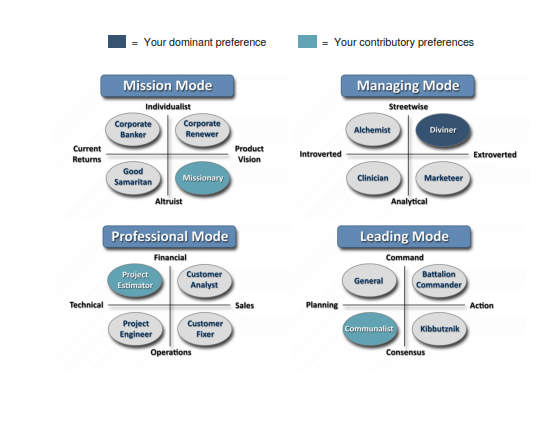 Your Leadership CockpitThis represents your preferences within each of the four leadership modes which direct your activities and the outcome of your organization. |