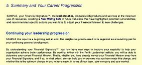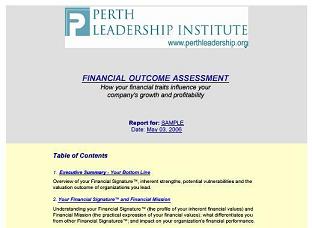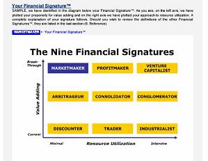 After completing the Financial Outcome Assessment, we will provide a comprehensive report on your Financial Signature® and potential financial outcomes. Detailed steps for improving your Financial Mission and your impact on the financial outcome of your enterprise are included. Extracts of a sample assessment are shown below.