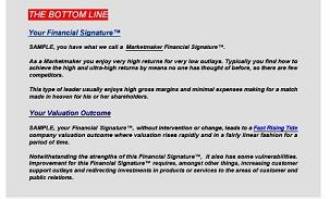 The Bottom LineYour Financial Signature® and valuation outcome is summarized in this section. |
