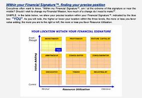 Your Financial Signature®This diagram shows the level of value-added and resource utilization characteristic to your Financial Signature. |